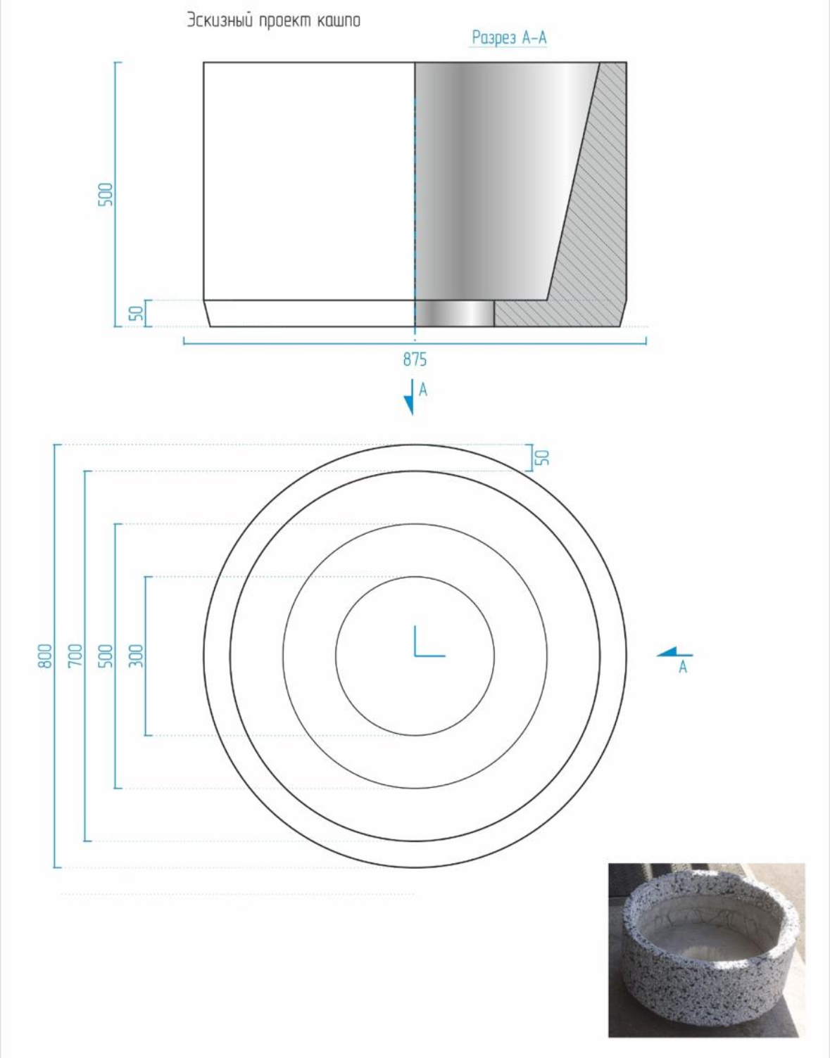 Вазон бетонный Карла H Размер: диаметр 800 мм.,высота 500 мм. Вес изделия 200 кг.