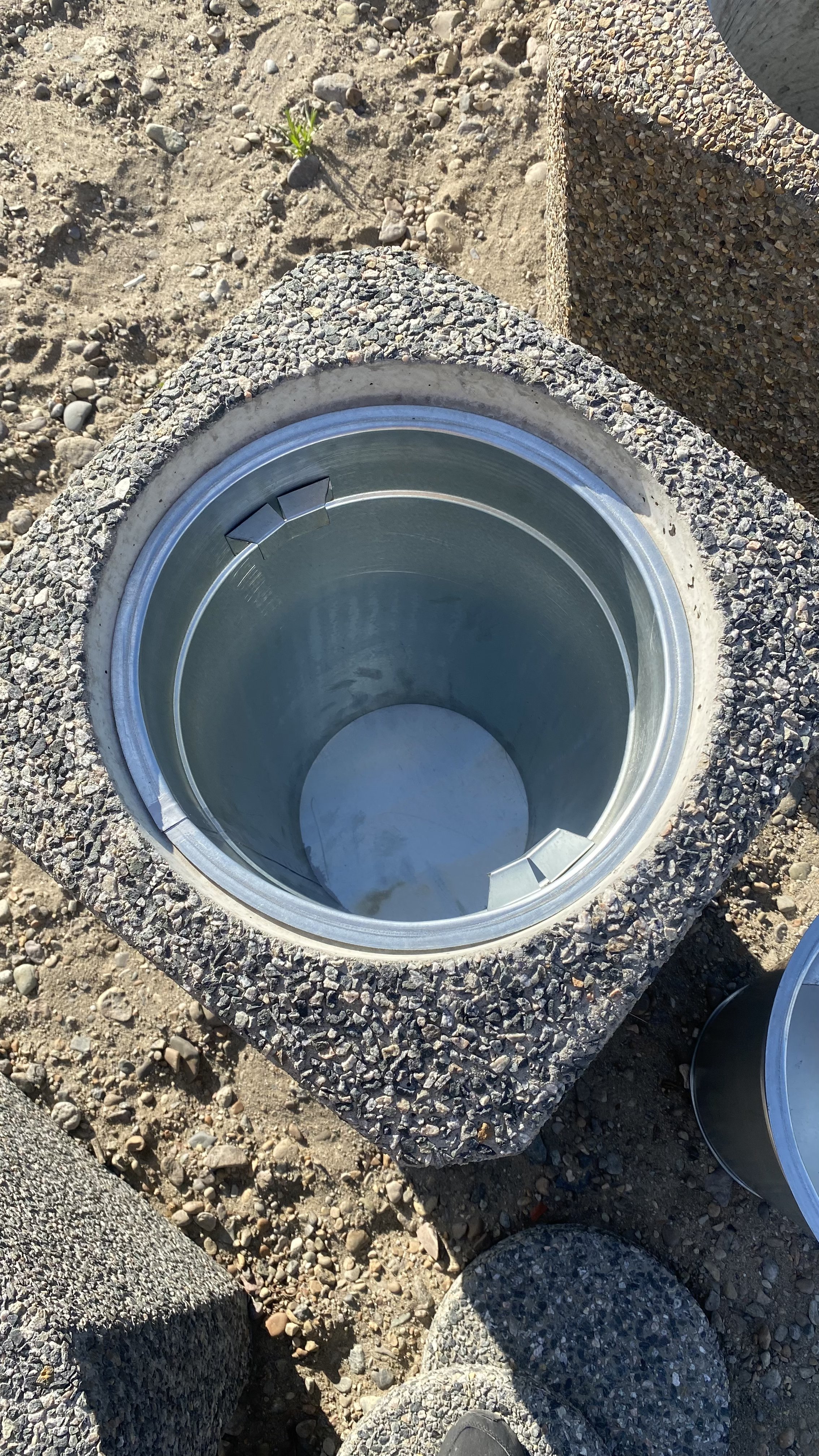 Урна из бетона Смисэтти Размер: длина 450 мм., ширина 450 мм., высота 680 мм. Вес изделия 170 кг. В комплекте оцинкованная вставка диаметр верхней части 315 мм., диаметр по низу 240 мм., высота 500 мм.